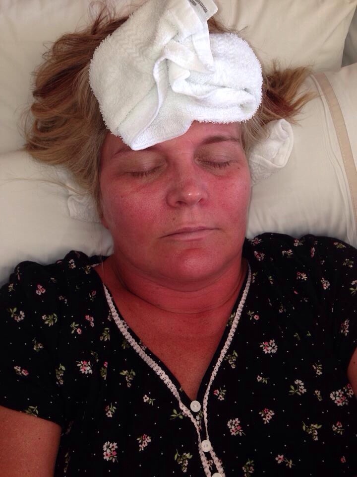 “It hit her hard. She has white lips, red eyes and her body looks like Barney. She’s so purple.. She has trouble breathing and I had a fit…I ran as fast as I could to get the car. Devon couldn’t be believe how fast I ran!! Got her in the truck and drove to the hospital as we called the cancer agency. Well no Emerg wants a cancer patient.. We turned around after talking to the nurse and went back to the room. Dr. Connors called and he is worried about her. He put her back on predizone and said call if she gets worse.”